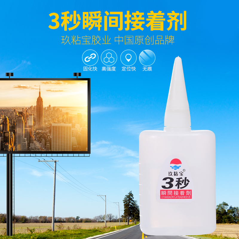玖粘宝三秒胶广告喷绘胶木材家具修补快干502胶水3秒胶水大瓶80克