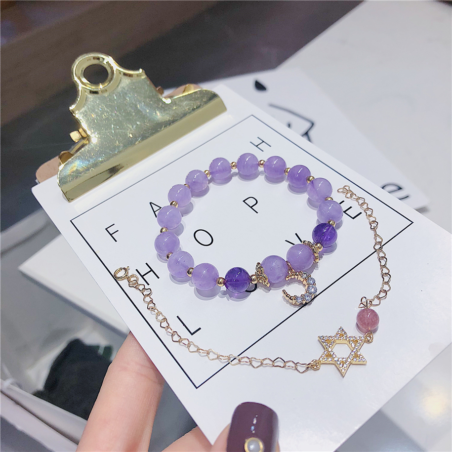 【原创】设计哈喽kitty水晶手链女925银小众设计灰月光粉晶桃花