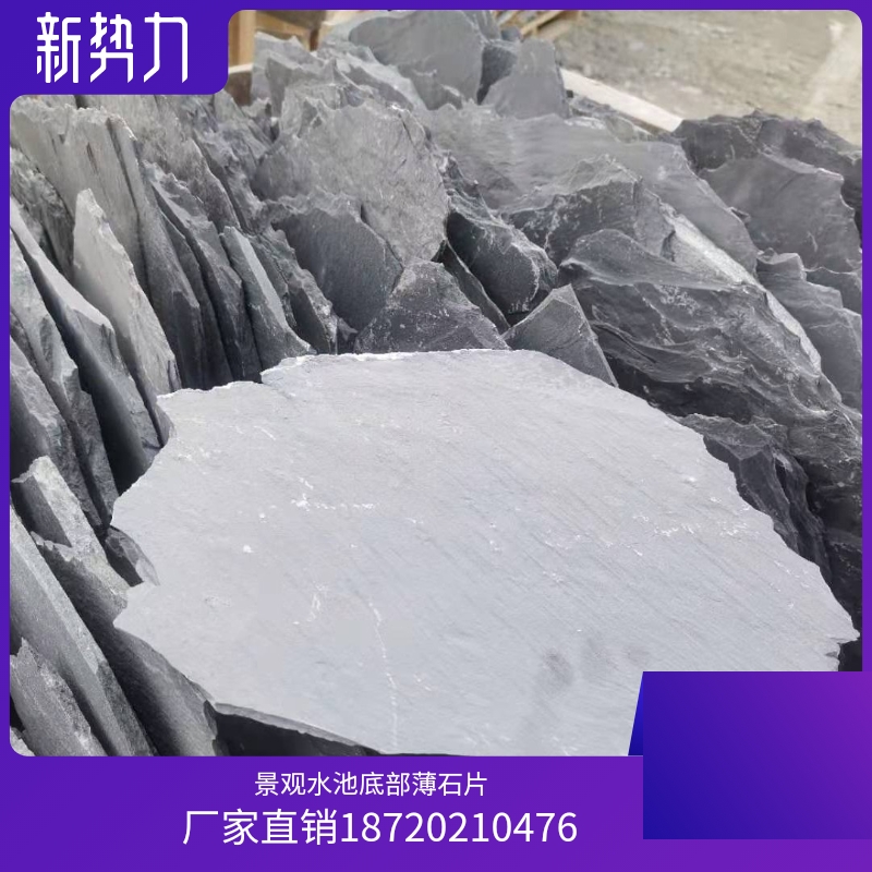 天然青石板岩不规则水池底石片边坡围墙乱石条室外景观水池底石板热门设计联盟服务商