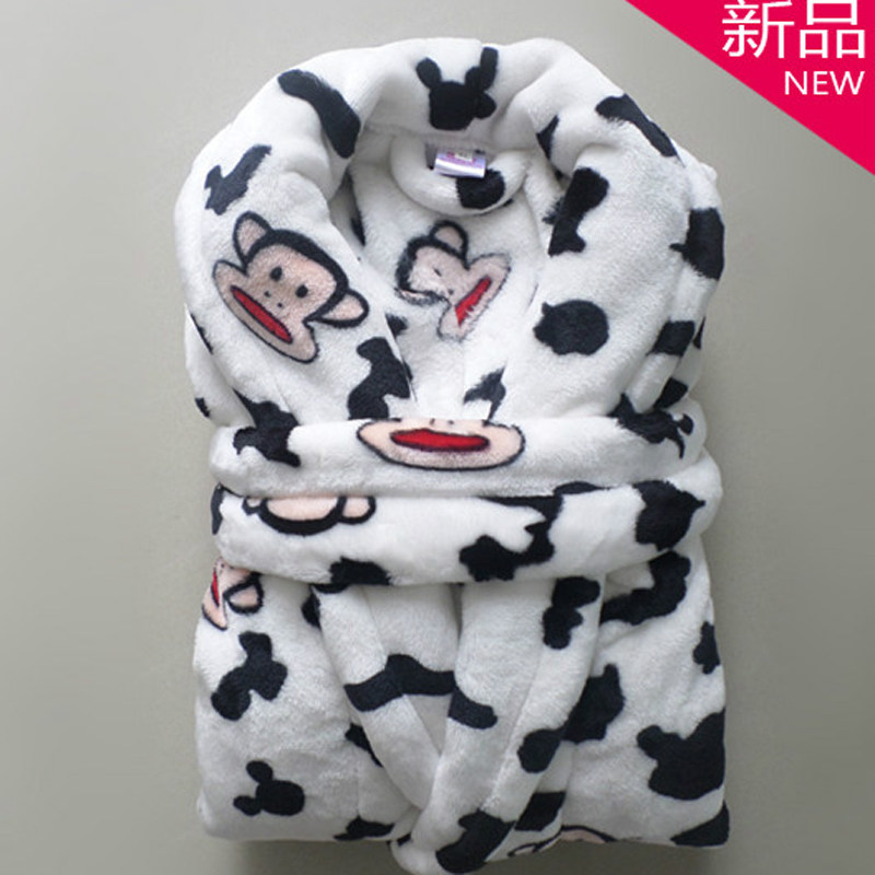 秋冬加厚珊瑚绒睡衣男女孩浴袍法兰绒清仓浴衣大嘴卡通猴儿童睡袍热门设计联盟服务商