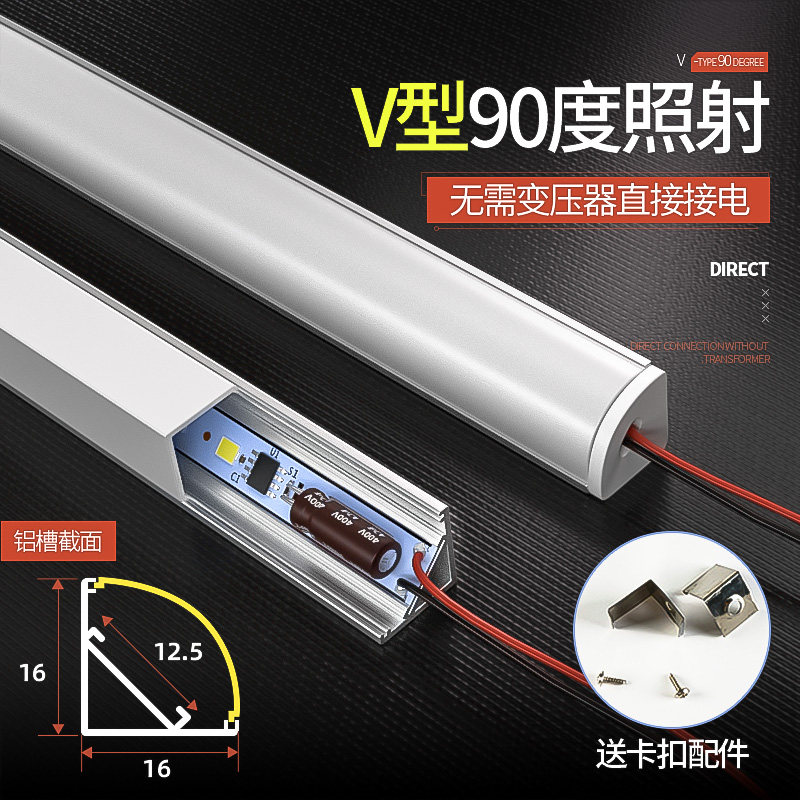 。超薄led硬灯条220V长条展柜货架灯带 超亮橱柜酒柜吊柜底V型灯热门设计联盟服务商