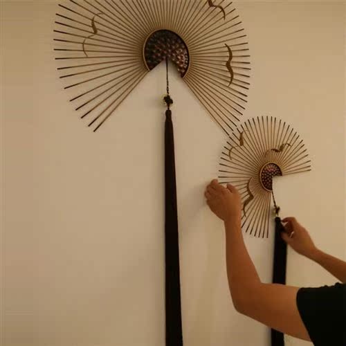 中国风过道e酒吧装修道具挂件禅意展厅客厅装饰件壁挂扇子装饰品热门设计联盟服务商