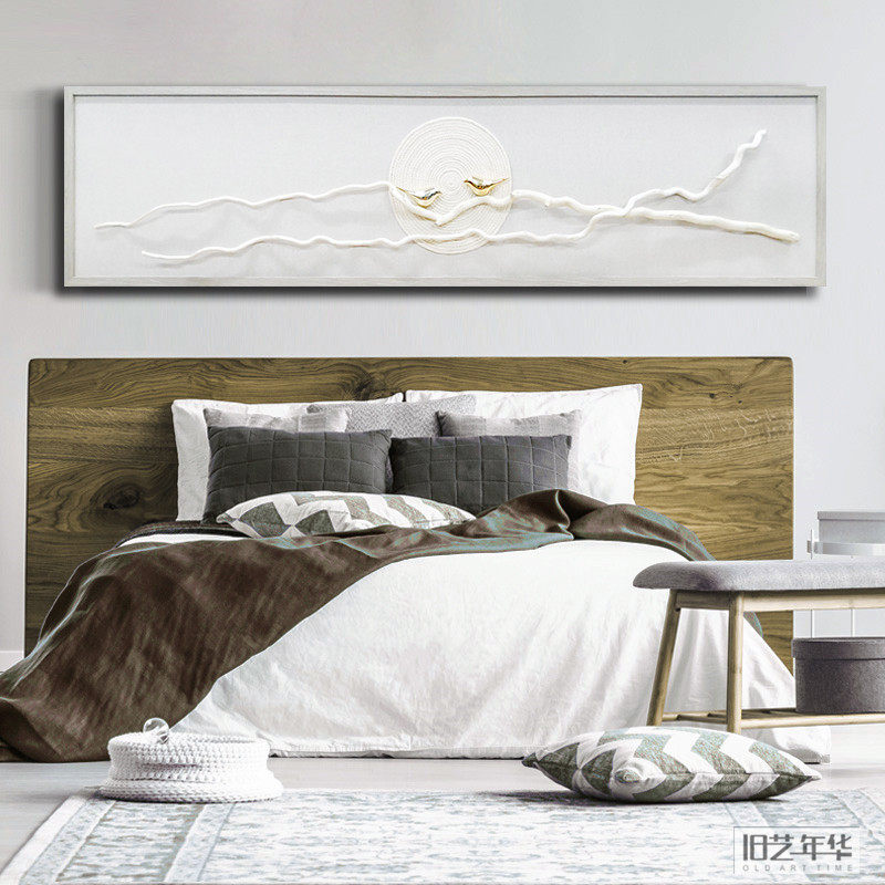 雀上枝头卧室床头创意实物画金色小鸟树枝横幅现代家装立体装饰。热门设计联盟服务商