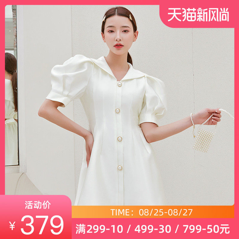 2021新款女装轻奢气质设计感礼服裙缎面复古单排扣收腰连衣裙夏季热门设计联盟服务商