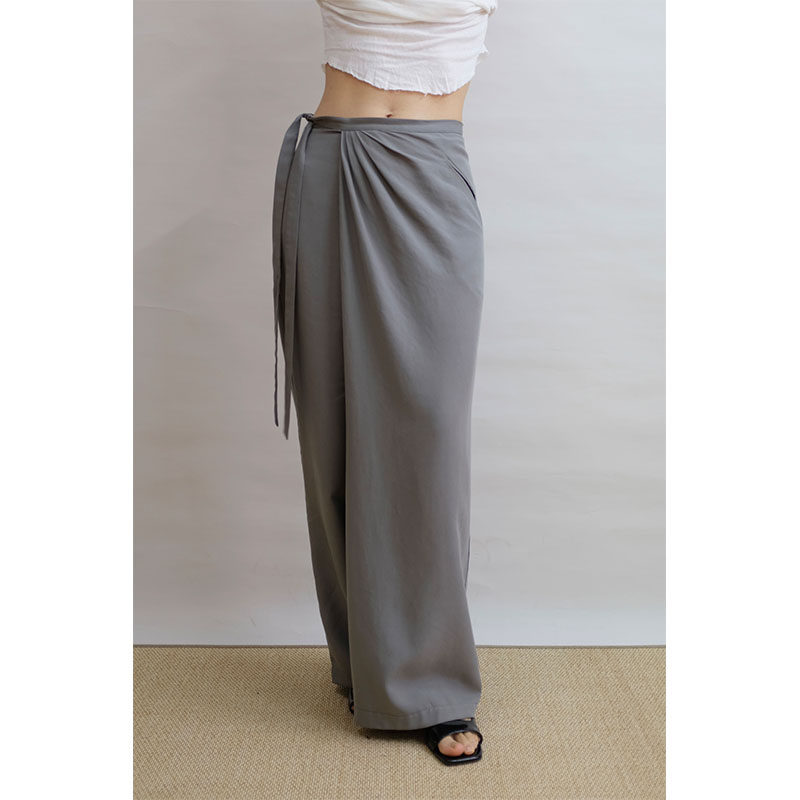 yuyin mountains 设计感不规则高腰天丝麻夏系带半身裙裤女热门设计联盟服务商