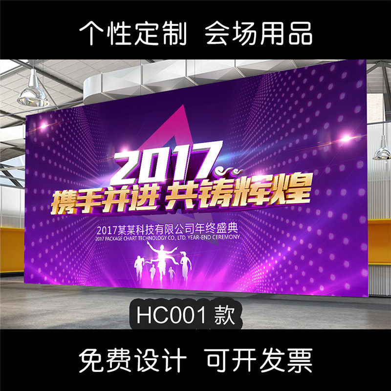 定制作2018公司年终盛典公司年会会场海报背景喷绘布周年庆设计热门设计联盟服务商